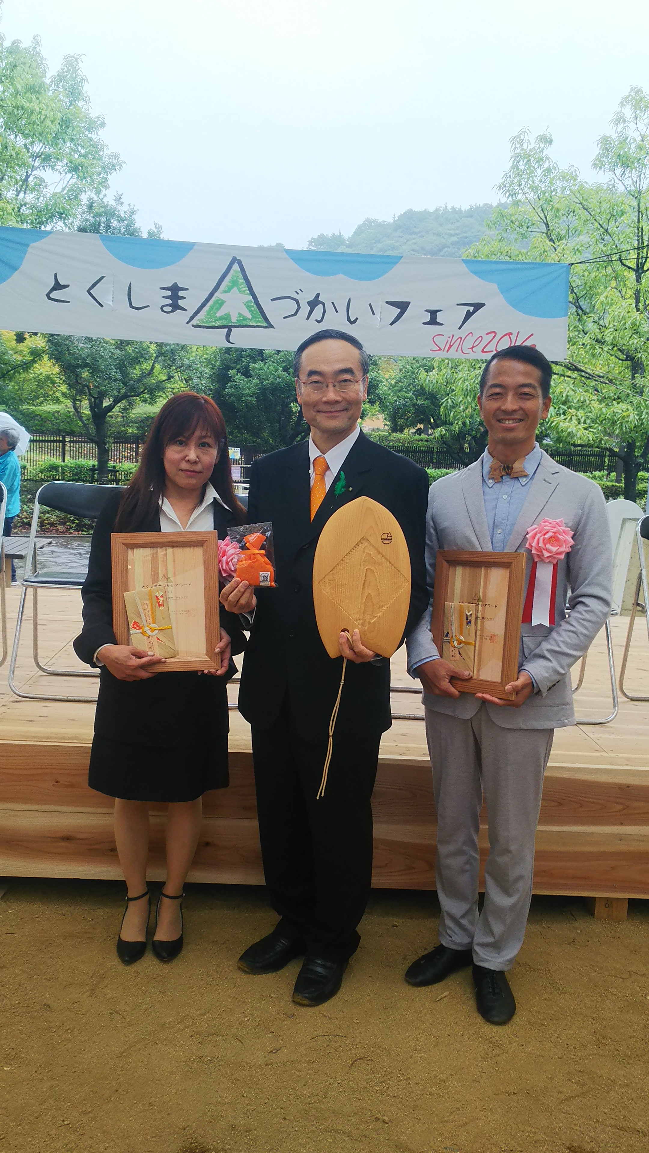 フェアのさなか、とくしま木づかいアワードの表彰がおこなわれました。デザイン部門(今年はおもちゃ)、プロダクト部門、アクション部門の3部門があり優秀な作品や取り組みが表彰されます。