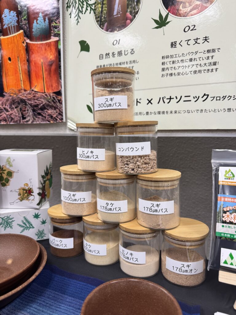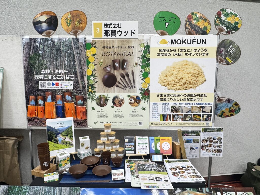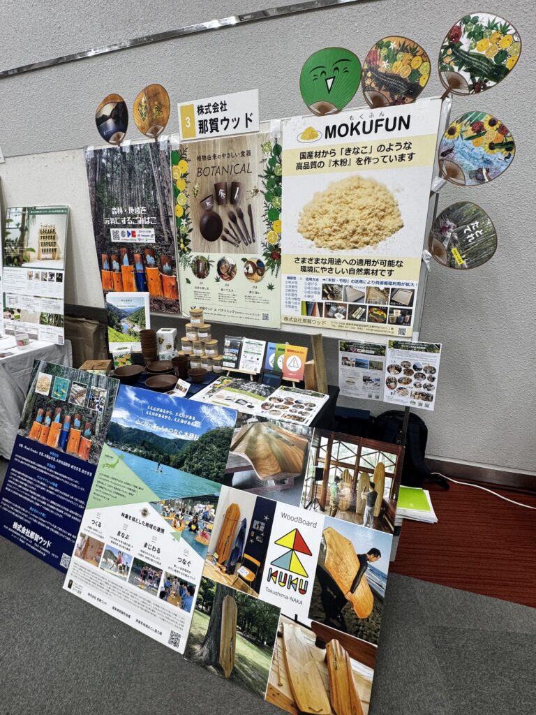 今回はスペースも限られるなか、幅広い取り組みをご紹介できるようにパネルと木粉活用製品、脱炭素カードゲームなどをご紹介させていただきました!