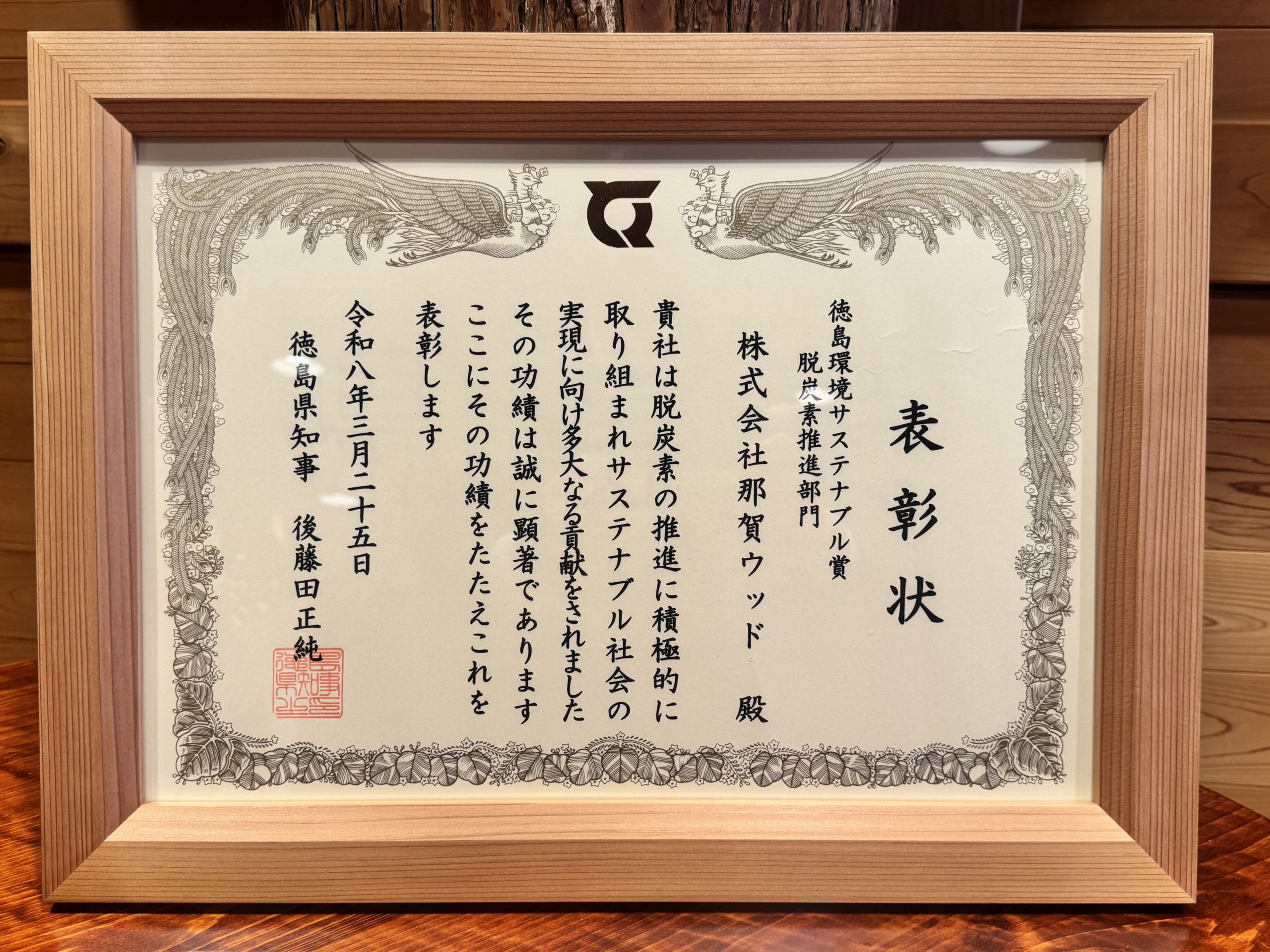 2026年3月25日に徳島県庁にて、「徳島環境サステナブル賞 脱炭素推進部門」をいただきました!