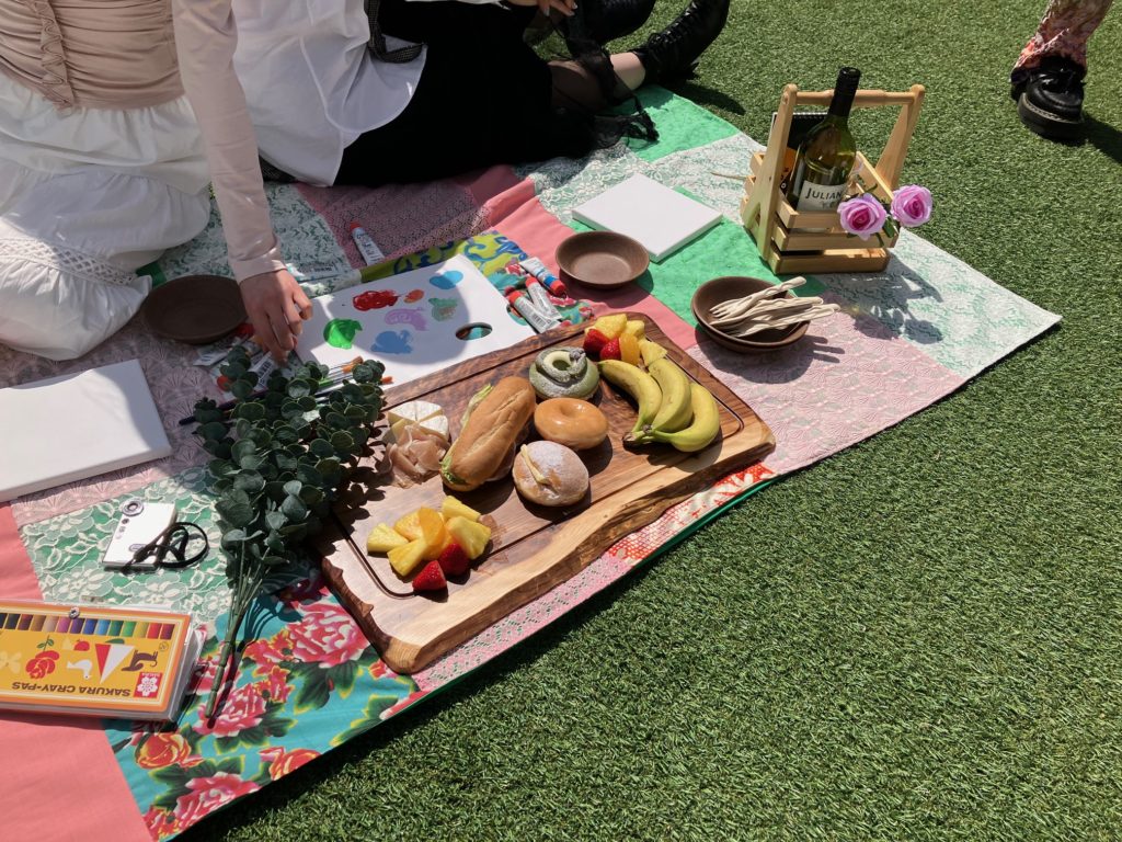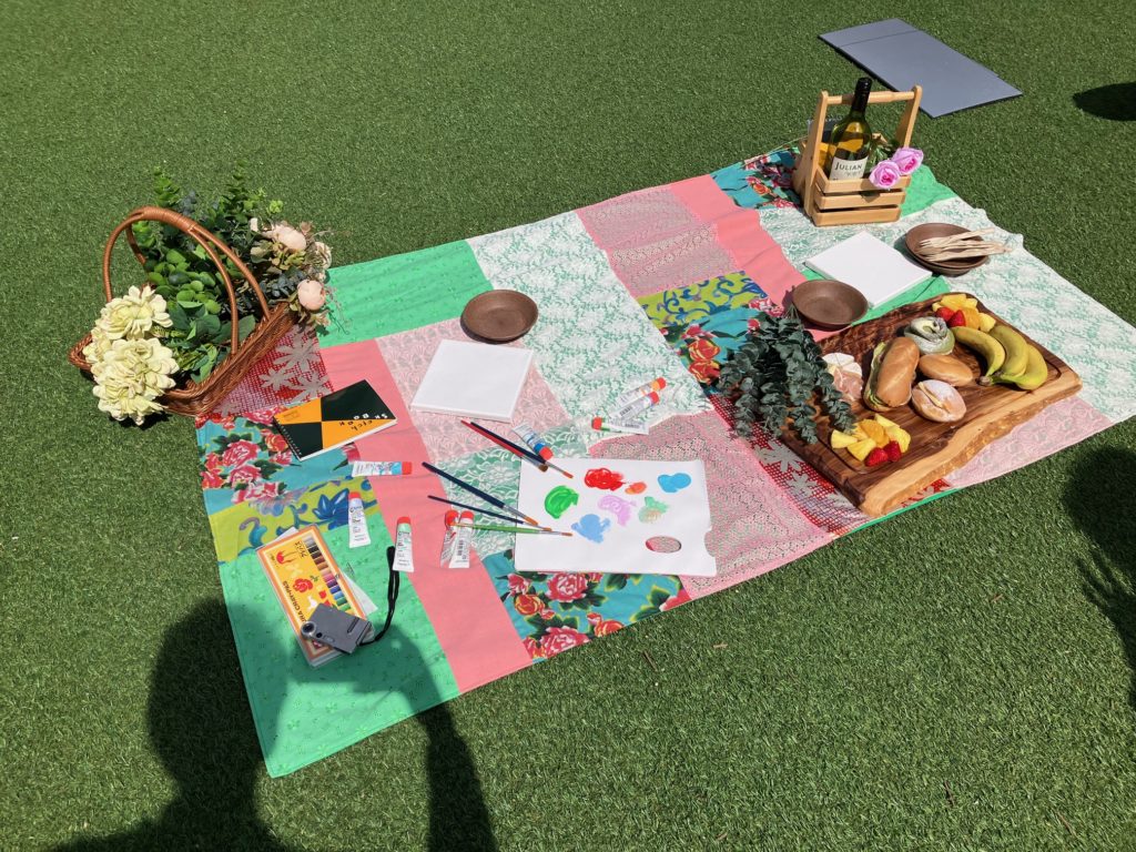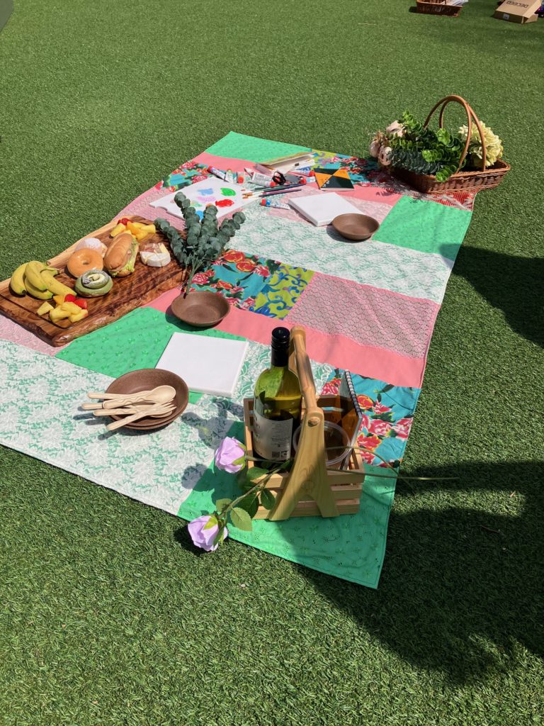アップサイクルラグ・リユースアイテムなど、循環配慮アイテムを使ったピクニックセットをレンタル提供。おしゃれな体験を通じてサステナビリティを体感できます。