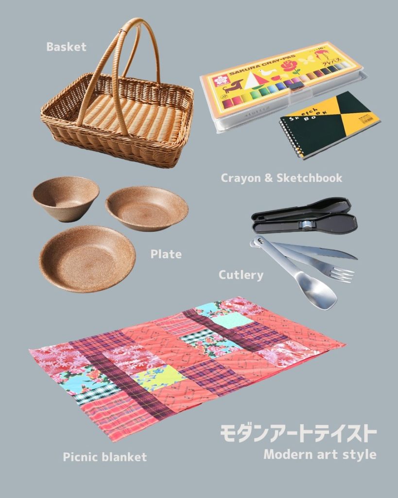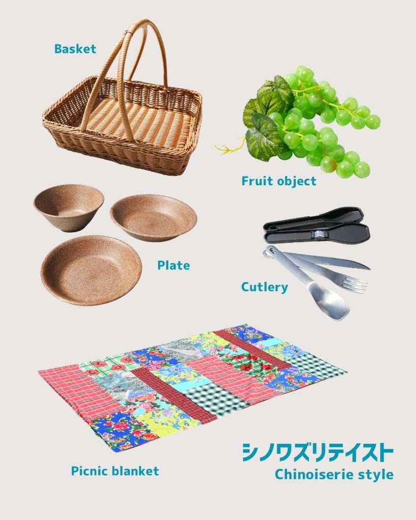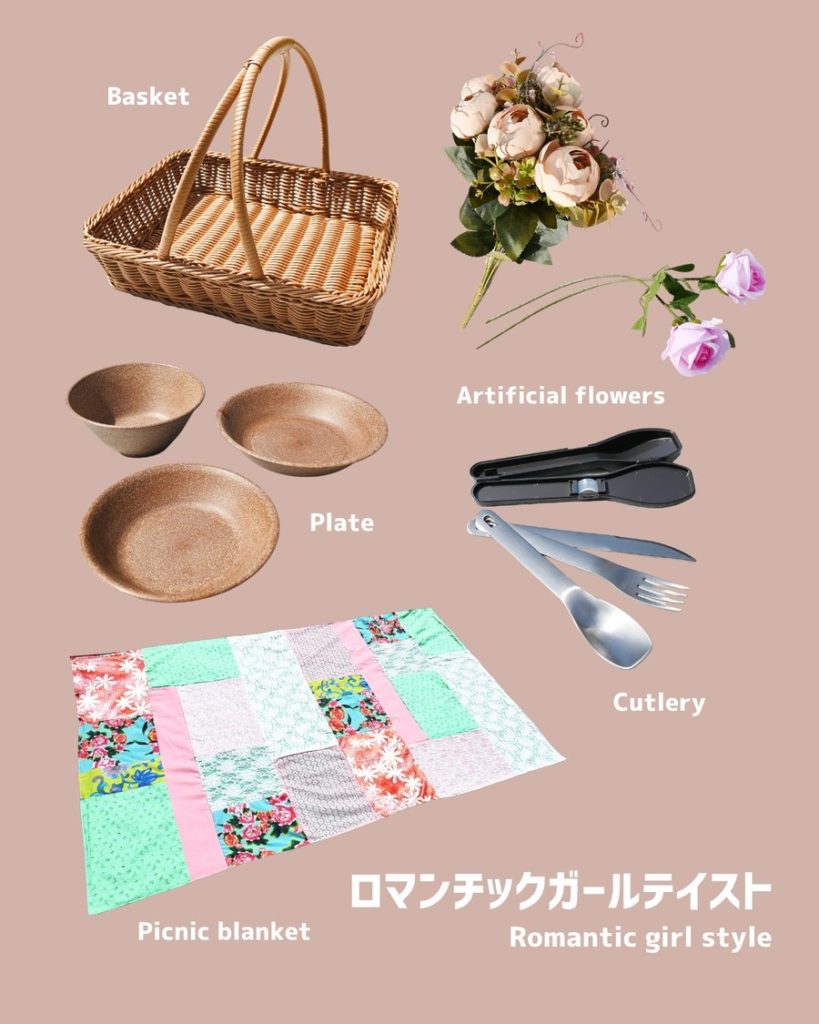 貸出アイテム:ラグ、バスケット、カトラリー類、小物