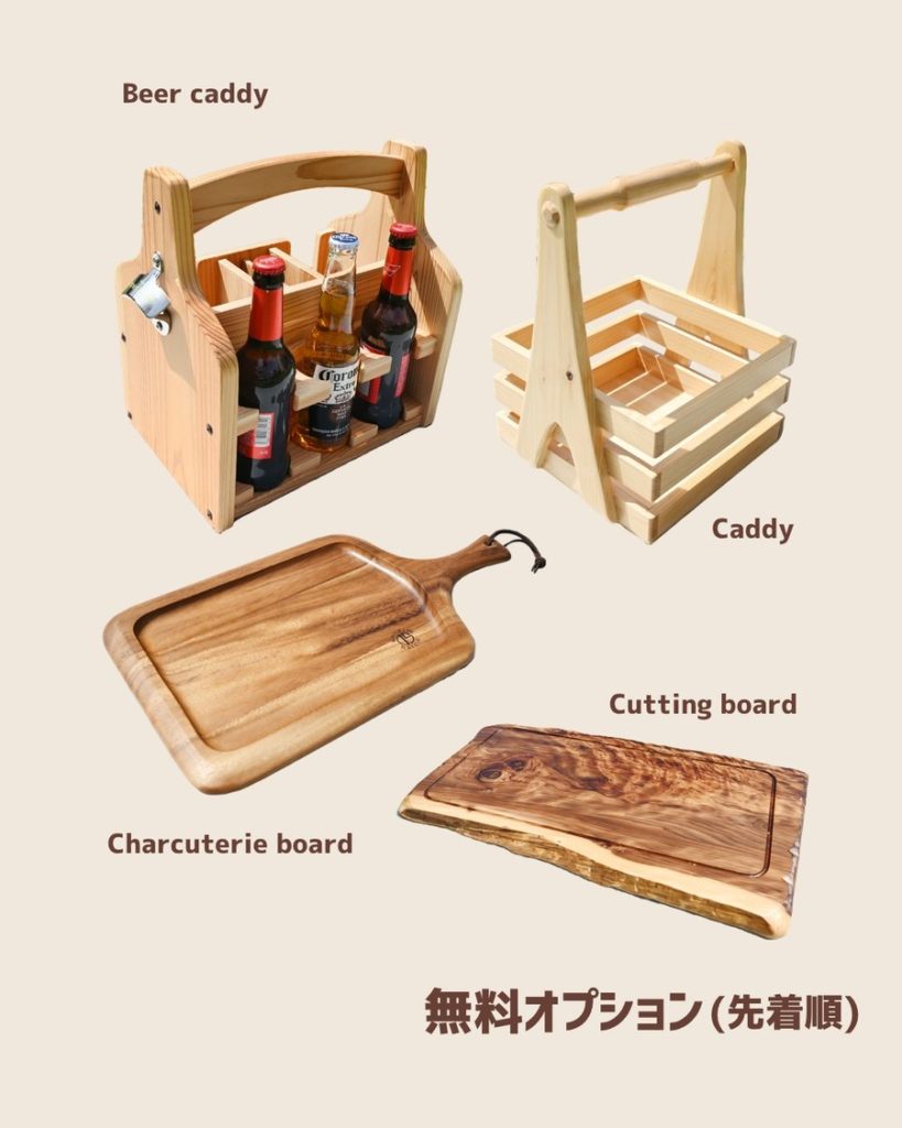 SPCのイベントには、那賀ウッドからは『植物由来の優しい食器 BOTANICALシリーズの杉バイオプラスチックプレート』『桧のピクニックキャディ』『杉のビアキャディ』『杉のシャルキュトリーボード』が登場します。